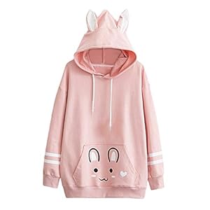 Clothing, Fashion Hoodies & Sweatshirts, Women's FashionSunhusing Ladies Cute Rabbit Ear Long Sleeve Hoodie Solid Color Embroidery Pullover Sweater
