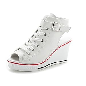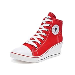 Clothing, Fashion Sneakers, Shoes, Women's FashionSokaly Women’s Sneaker High-Heeled Canvas Shoes High-Top Pump Lace UP Wedges Side Zipper Shoes Fashion Sneakers