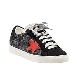 Feature: This fashion sneaker featuring closed round toe, low heel, glitter upper, classic silhouette, metallic or animal print colorblocking, star cutout detail, lace-up closure, padded footbed and collar, white flatform sole.