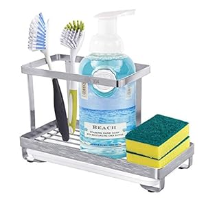 Kitchen & Bath Fixtures, Tools and Home ImprovementKitchen Sink Caddy Organizer for Sponge Brush Dish Soap, with Removable Drip Tray, 18/8 Stainless Steel