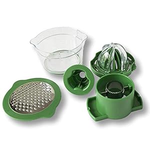 GET IN AND OUT OF THE KITCHEN FAST by using one tool to grate, juice, core, and measure. No need to drag out your electric appliances and several other tools – just prepare your food and pop all the parts in the dishwasher for quick prep and clean-up. The multi functional juicer also works ans an egg yolk separator when you flip it over!