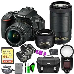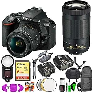 Camera, Camera & Photo, Electronics, NikonNikon D5600 DSLR Camera with 18-55mm and 70-300mm Lenses + Nikon 35mm f/1.8 Lens + 64GB Memory Card + Round Head Speedlite V1-C + GODOX TTL Flash Trigger
