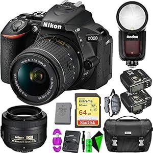 Camera, Camera & Photo, Electronics, NikonNikon D5600 DSLR Camera with 18-55mm Lens + Nikon 35mm f/1.8 Lens + 64GB Memory Card + Round Head Speedlite V1-C + GODOX TTL Flash Trigger
