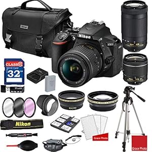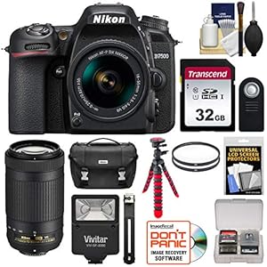 Camera, Camera & Photo, Electronics, NikonNikon D7500 Digital SLR Camera with 18-55mm & 70-300mm VR DX AF-P Lenses & Case with 32GB Card + Flash + Tripod + 2 Filters + Remote + Kit