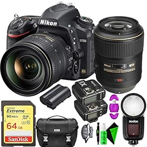 Camera, Camera & Photo, Electronics, NikonNikon D750 DSLR Camera with 24-120mm Lens + Nikon 105mm F/2.8 VR AF-S Lens + 64GB Memory Card + Round Head Speedlite V1-C + GODOX TTL Flash Trigger