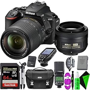 Camera, Camera & Photo, Electronics, NikonNikon D5600 DSLR Camera with 18-140mm Lens + Nikon 35mm f/1.8 Lens + 64GB Memory Card + Round Head Speedlite V1-C + GODOX TTL Flash Trigger
