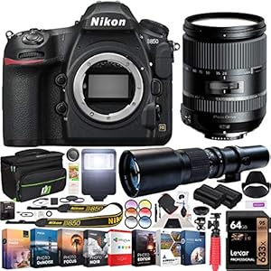 Camera, Camera & Photo, Electronics, NikonNikon D850 45.7MP Full-Frame FX-Format Digital SLR Camera Black Body Bundle with 28-300mm F/3.5-6.3 Di VC PZD Lens, 500mm Telephoto Lens, 64GB Memory Card and Accessories (8 Items)