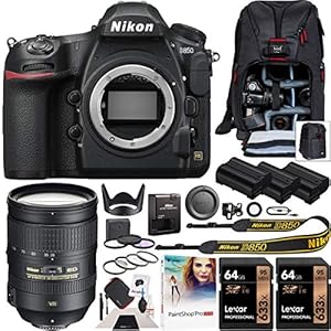Camera, Camera & Photo, Electronics, NikonNikon D850 45.7MP Full-Frame FX-Format Digital SLR Camera Body Black Bundle with 191-28-300mm f/3.5-5.6G ED VR AF-S NIKKOR Lens, 2X 32GB Memory Card, Backpack and Accessories (5 Items)
