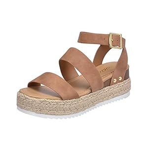 Clothing, Sandals, Shoes, Women's FashionSyktkmx Womens Strappy Espadrille Platform Wedge Sandals Open Toe Slingback Mid Heel Summer Sandals