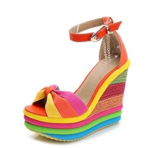 Clothing, Sandals, Shoes, Women's FashionSaraIris Sandals for Women Gladiator Ankle Strap High Heel Platform Shoes Wedge Rainbow Sandals for Women