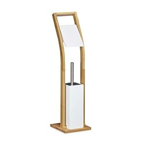 Cleaning Tools, Health and Household, Household SuppliesRelaxdays Toilet Brush and Holder Size: 75 x 19 x 19 cm Bamboo Toilet Brush Holder with Toilet Paper Holder Bathroom Butler with Toilet Brush and Toilet Roll Holder Free-Standing Toilet Stand, White