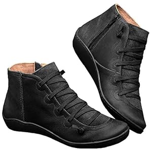 Boots, Clothing, Shoes, Women's FashionDEARWEN Womens Flat Heel Boot Soft Arch Support Ankle Boot Casual Lace Up Booties
