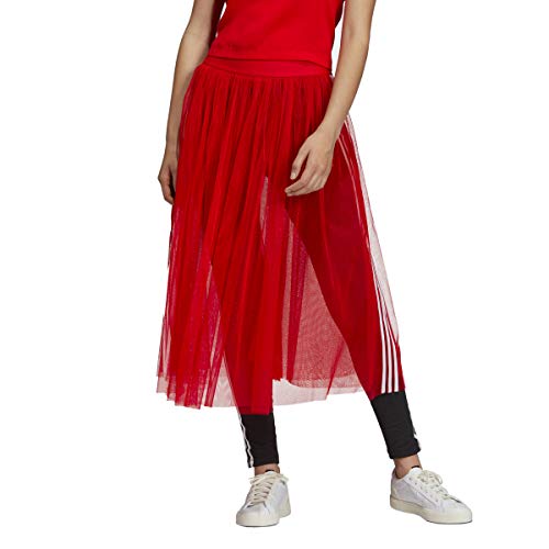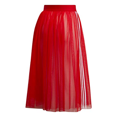 Light and airy midi tulle skirt by adidas Originals Women. Feminine yet sporty, this mesh skirt has a wide stretch waist with an embroidered trefoil logo. 3-stripes run the length of the gathered tulle which has two layers to give volume. The skirt is completely sheer and can be worn with hot pants, shorts or leggings for more coverage. True to size. Length (approx): 30.5 inches / 77.5cm 100% polyester mesh tulle. Machine wash cold delicate.