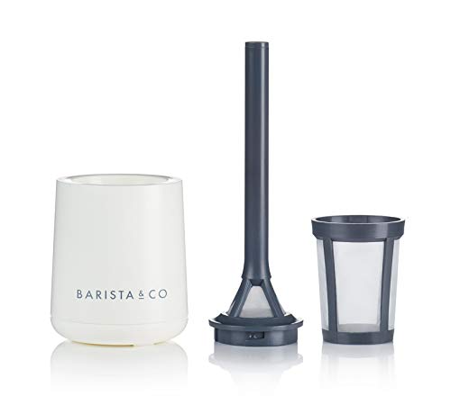 The Barista Grey/White Brew It Stick Coffee Infuser is a revolutionary way to make great-tasting coffee with minimal time and effort. It works just like a tea infuser, so all you need to do is put your ground coffee inside, slowly pour water through the top filter and then immerse the Brew It Stick in the water until brewed to perfection. Easy to clean and convenient to carry around, the Brew It Stick is the ideal choice for newcomers to coffee brewing or those with limited time on their hands. To use: 1. Fill infuser basket with coarsely ground coffee and secure handle2. Place infuser into an empty cup3. Slowly pour boiling water through the 360 degree filter4. Pour until the desired water level is reached5. Slowly twist the Brew It Stick for 5 seconds and leave for 4 minutes to infuse6. Stir. Remove from cup. Enjoy!