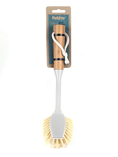 Keep your pots, pans, plates, glasses and mugs sparkling with this Beldray Dish Brush. With wonderfully tough bristles to clean away even the most stubborn stains, the brush is designed to withstand the demands of a busy family home. The ergonomic handle also means you have a comfortable and controlled grip, for simpler and easier cleaning. Made from durable, sustainable bamboo, you can even be happy in the knowledge that you are doing you bit for the environment. Make cleaning less of a chore with the superb Beldray Dish Brush, ideal for cleaning dirty pots, plates, glasses and mugs. With a sleek oval shaped brush head featuring a square end for scraping tougher stains, there is no mess this brush cannot handle. Measuring 28l x 7w x 6.5h cm, the brush has a strong and sturdy design that would be a great addition to any cleaning set. Made from durable bamboo, the brush is made from sustainable materials to improve your cleaning while decreasing your carbon footprint. With a handy rope tie and hanging hole for fast drying, the bamboo brush has a classic yet stylish look that will enhance any home.