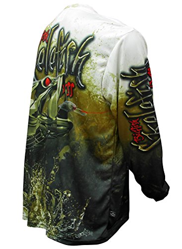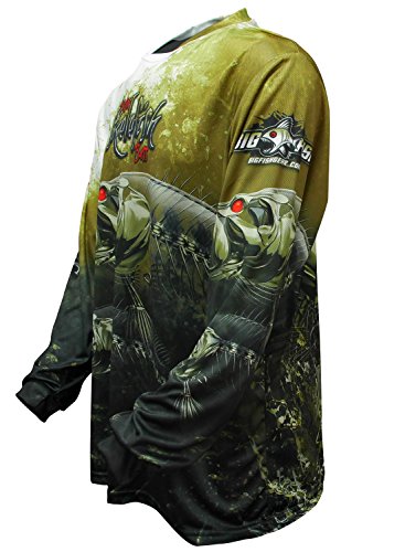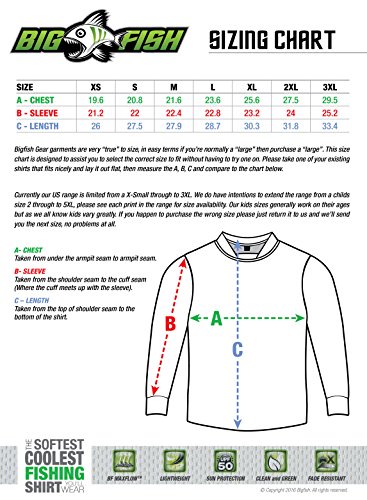 The “Skelefish Range” is the ultimate in skeleton style performance fishing apparel. “Skelefish Bass” is a dynamic, olive toned print of bass chasing down a “skelelure” on the front whilst the back shows another jumping clear of the water trying to throw the same lure. Great piece of gear for a great fish – If Bass are your target species, then you almost need to have this shirt in your kit – get into Skelefish Bass today!! All BIGFISH SHIRTS are made from the highest quality, Australian knitted polyester. Our “BF MaxflowTM” material is designed for the tropics, is incredibly soft to feel, unbelievably cool, durable, UPF 50, and lightweight. Not only do our shirts look great, anglers want to wear BIGFISH for their comfort, style and of course great sun protection.