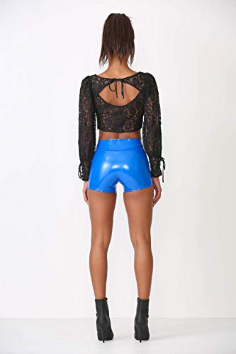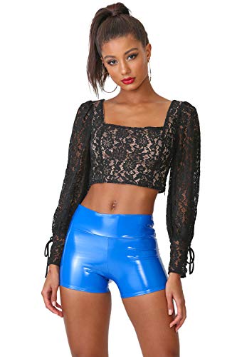 The shorts are constructed from coated fabrics for a leather-like look . Metallic colors are less stretchy than matte colors. Model (Height 5’8″ Weight 110 lbs Chest 33″ Waist 23″ Hips 33″ Cup B Dress 0) is wearing a small. The color you see on your screen might not be an exact color of the product due to monitor settings/pixel definitions/model/brand/etc.
