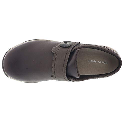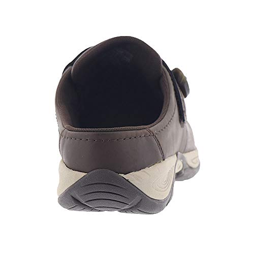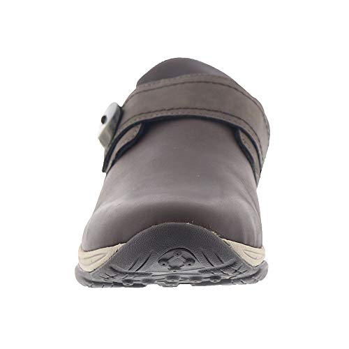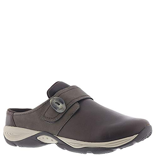 Slip on mule with adjustable strap.