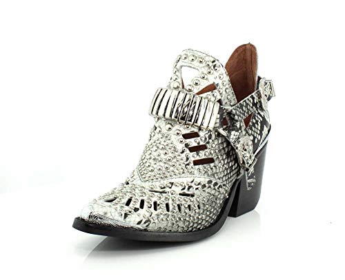 Western heeled booties with studs and eyelets.