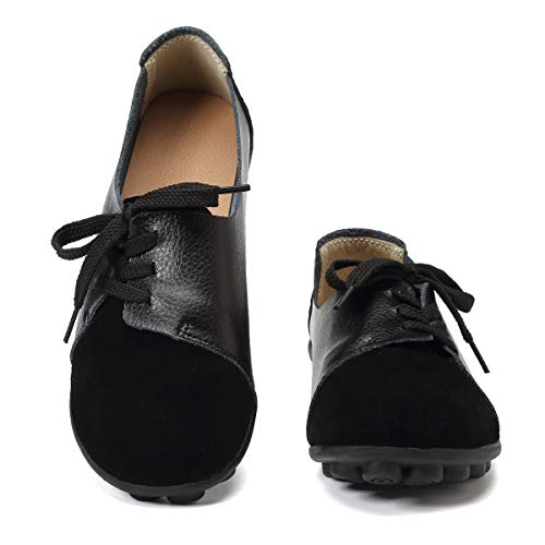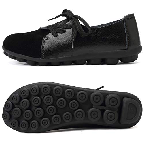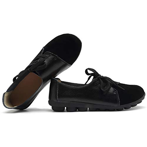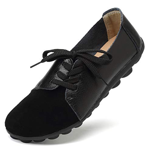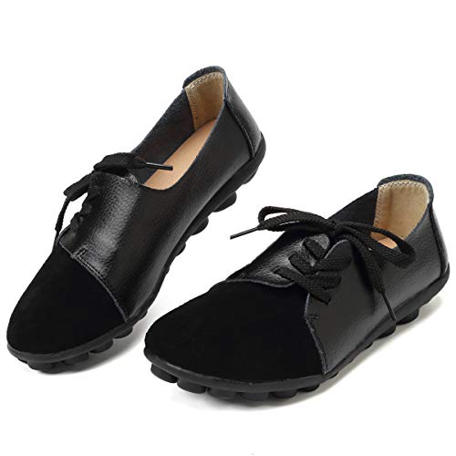 KISFLY Leather Loafers for Women Comfort Walking Driving Flat Shoes