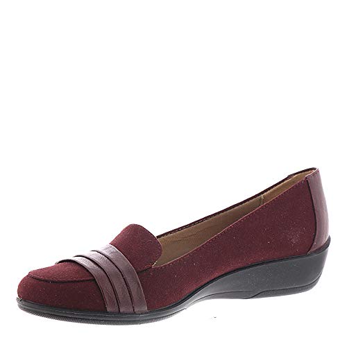 Slip into the imperia tailored loafer from LifeStride with exceptional comfort and standout touches. Faux leather upper with a round toe, slip-on fit, and foldover detailing at the toe. Soft system® comfort package provides all-day support, flex, and cushioning. A plush layer of velocity with memory foam® cradles your foot. Traction sole provides you with extra stability. Just right height 1 and 3/4 inch heel.