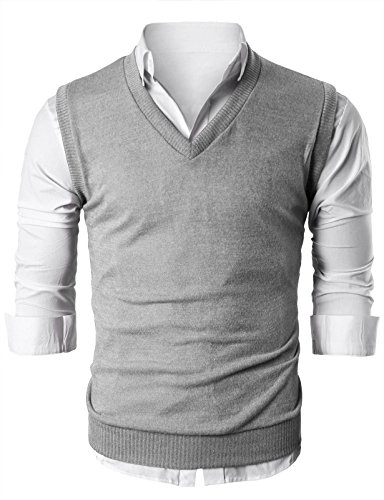 OHOO Mens Slim Fit Casual V-Neck Knit Vest
