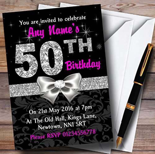Pink Black Silver Diamond 50Th Birthday Party Personalized Invitations