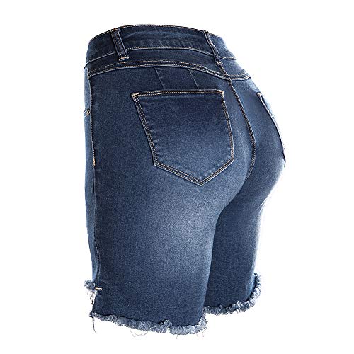 Mid -rise distressed denim shorts with a cuffed hem and a “push up” fit for a curvier look. zip fly closure construction.